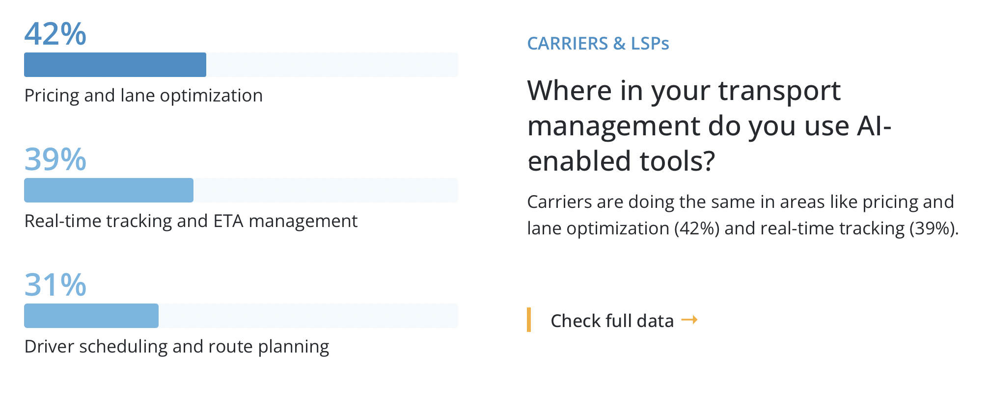 Carriers are doing the same in areas like pricing and lane optimization (42%) and real-time tracking (39%).