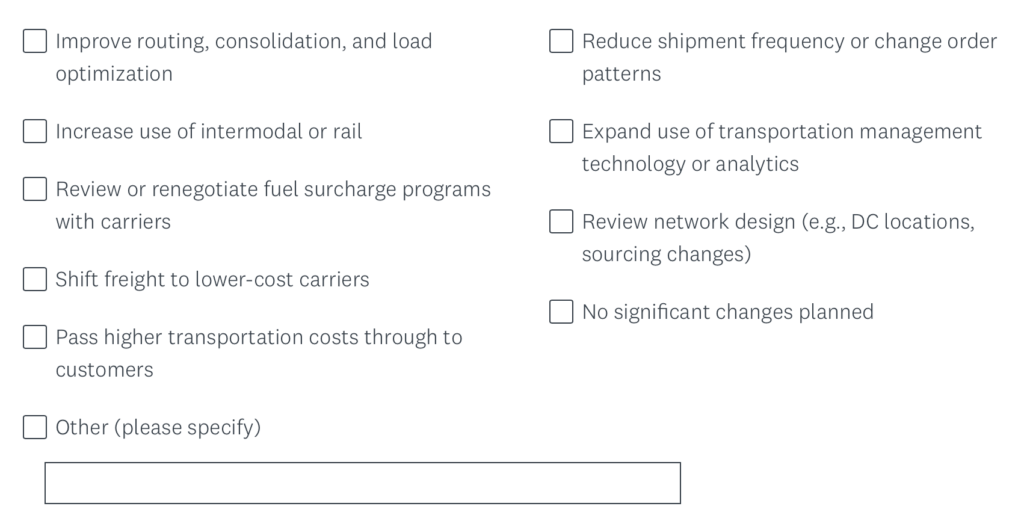 We asked members of our Indago research community — supply chain and logistics executives from manufacturing, retail, and distribution companies — and provided them with the following response options: